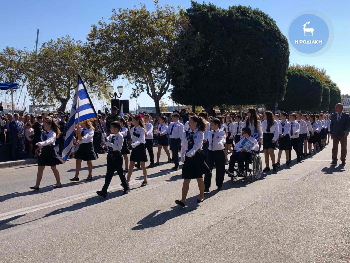 Με σύμμαχο τον πολύ καλό καιρό, πλήθος κόσμου έσπευσε στο κέντρο της πόλης της Ρόδου όπου σύλλογοι, σωματεία, σχολεία όλων των βαθμίδων και στρατός, παρέλασαν αποσπώντας το θερμότερο χειροκρότημα των συμπολιτών μας που βρέθηκαν εκεί, τιμώντας την ιστορική επέτειο του "ΟΧΙ".