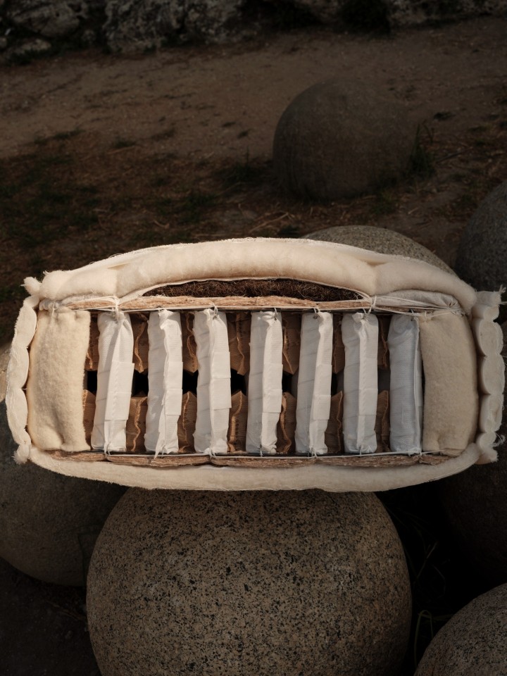 - το χειροποίητο στρώμα “SKANDILI, κατασκευασμένο από φυσικά υλικά, δένεται 100% στο χέρι με βελόνα, χωρίς τη χρήση κόλλας. Διαθέτει ελατήρια Calico Pocket, για εξατομικευμένη στήριξη και βελτιωμένη ροή αέρα, απορροφώντας αποτελεσματικά κάθε κίνηση.