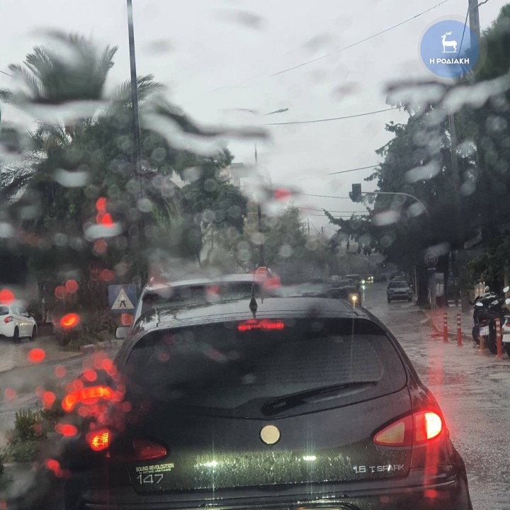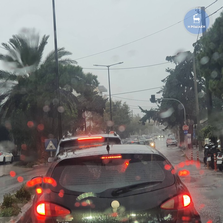 Αρκετοί δρόμοι στην πόλη έχουν πλημμυρήσει, ενώ σε ποτάμι έχει μετατραπεί και ο δρόμος της Ιξιάς, με αποτέλεσμα να έχει δημιουργηθεί κυκλοφοριακό κομφούζιο και τα αυτοκίνητα να βρίσκονται ακινητοποιημένα στο ρεύμα από Ιαλυσό προς Ρόδο.