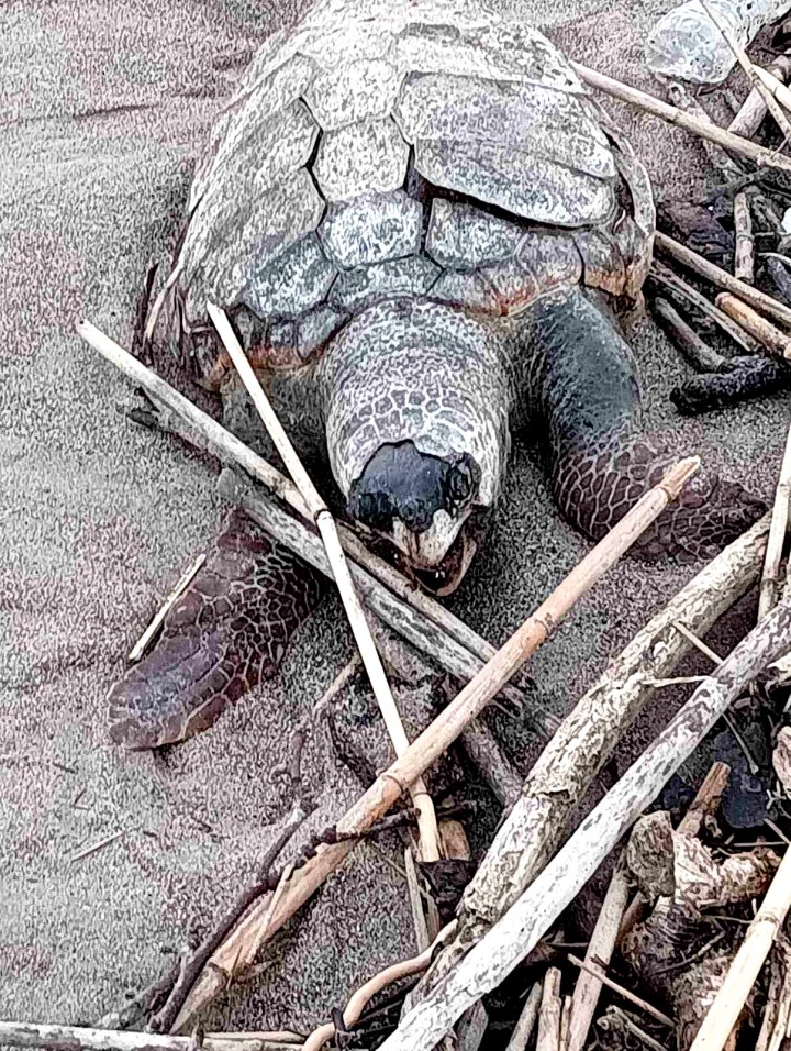 Στην παραλία Αφάντου όμως, εκβράστηκε μαζί με όλα τα παραπάνω και μία νεκρή χελώνα!