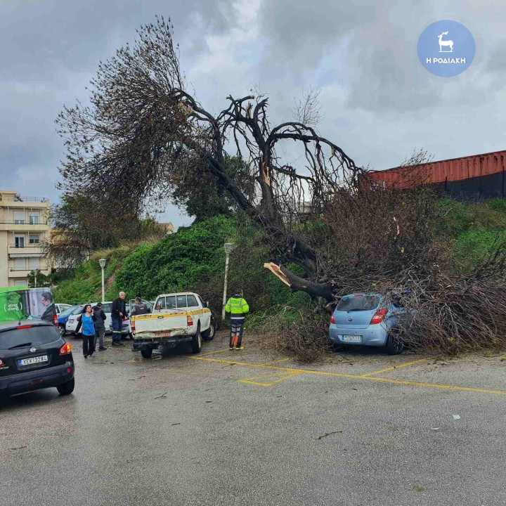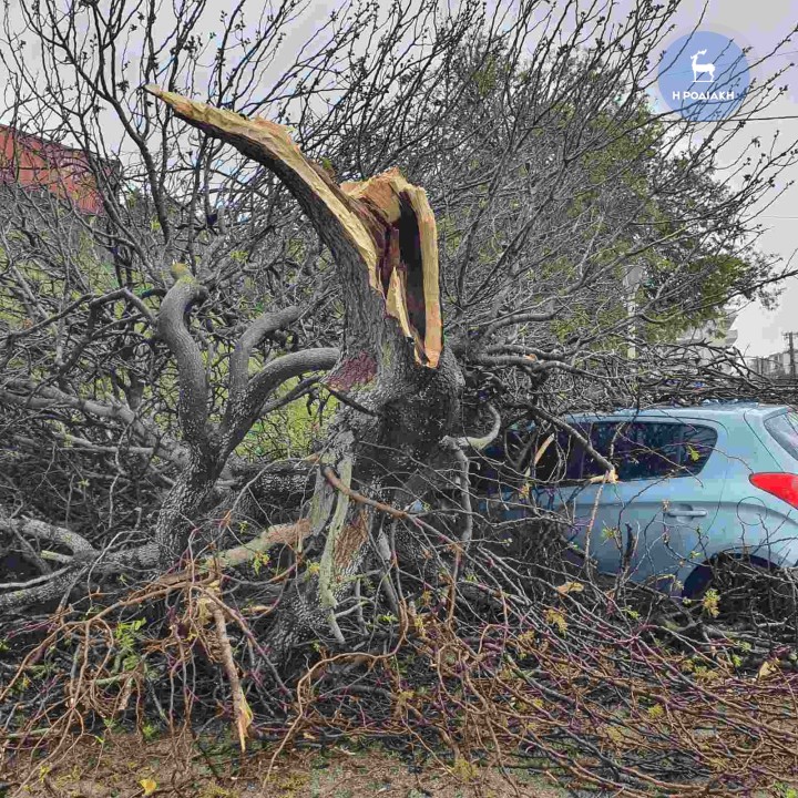 Στο σημείο βρέθηκε ισχυρή δύναμη της Πυροσβεστικής Υπηρεσίας Ρόδου και στελέχη της Υπηρεσίας Πρασίνου του δήμου, προκειμένου να τεμαχίσουν και να απομακρύνουν τα σπασμένα δέντρα με ασφάλεια.