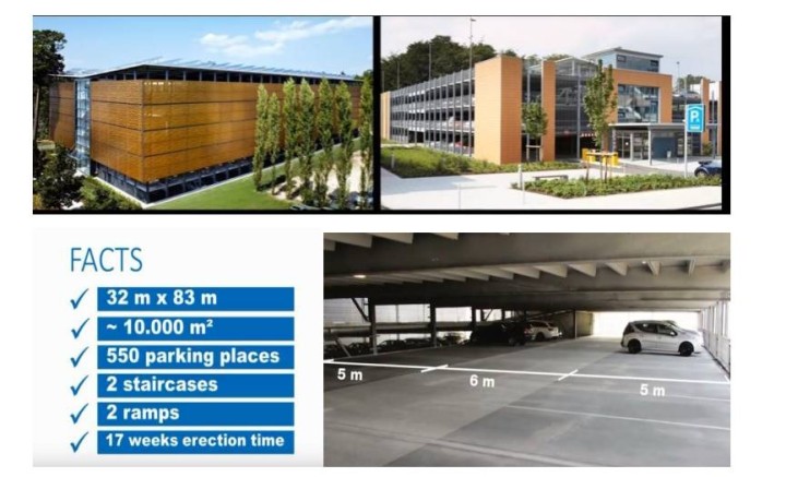 Επίσης δίνει τη δυνατότητα κράτησης θέσης στάθμευσης, πληρώνοντας το τίμημααπότο κινητό ή το tablet. Το Parking σε περιοχές εμπορικού ή τουριστικού ενδιαφέροντος λύνεται σήμερα μεσύμμεικτες κατασκευές. Η επιλογή αυτή επικρατεί διότι κατά τον σχεδιασμό χώρων στάθμευσης, η πτυχή της σχέσης κόστους / αποτελεσματικότητας είναι θεμελιώδους σημασίας.