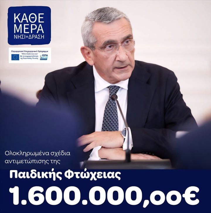 Με 1.600.000 ευρώ από ευρωπαϊκούς πόρους του ΕΣΠΑ, η περιφέρεια Νοτίου Αιγαίου ρίχνεται στη «μάχη» για την καταπολέμηση της παιδικής φτώχειας, όπως τονίζει ο περιφερειάρχης Νοτίου Αιγαίου, κ. Γιώργος Χατζημάρκος. Ο κ. Γιώργος Χατζημάρκος σε δήλωσή του σε μέσο κοινωνικής δικτύωσης, αναφέρει τα εξής: