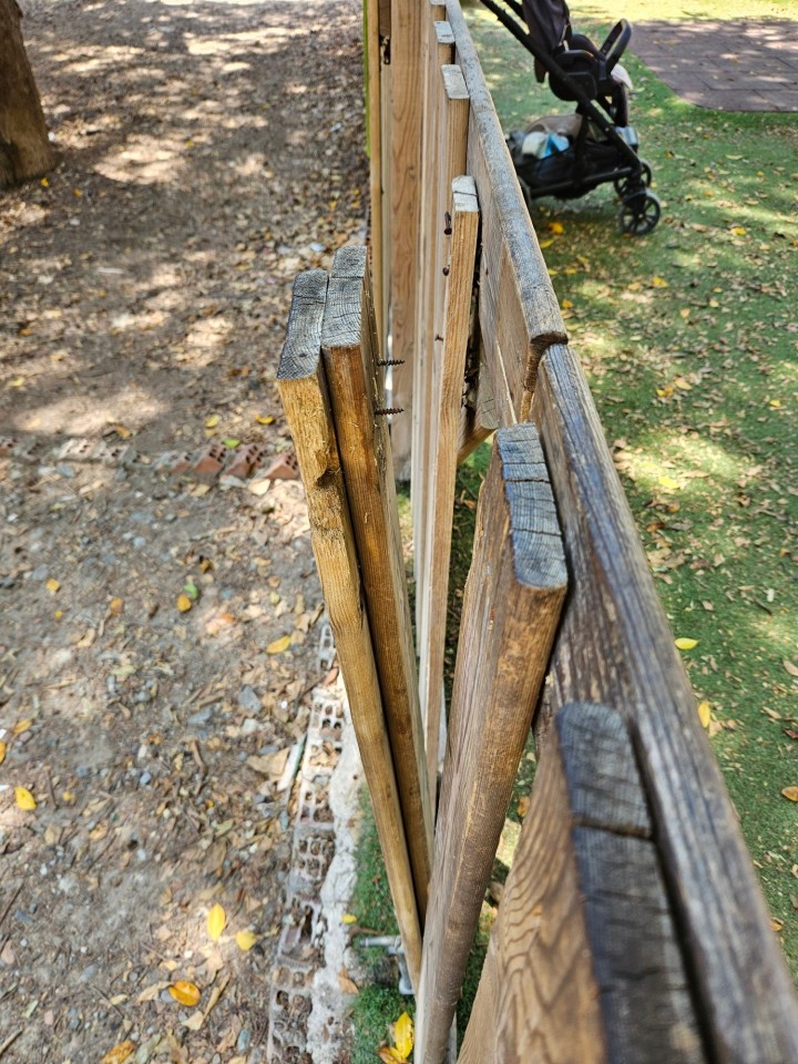 Τη ξύλινη ράμπα που οδηγεί στην τσουλήθρα τη στερέωσε πρόσφατα γονέας με δικά του εργαλεία, όμως όπως φάνηκε, τα ξύλα από κάτω είναι σάπια και σε πολύ κακή κατάσταση.