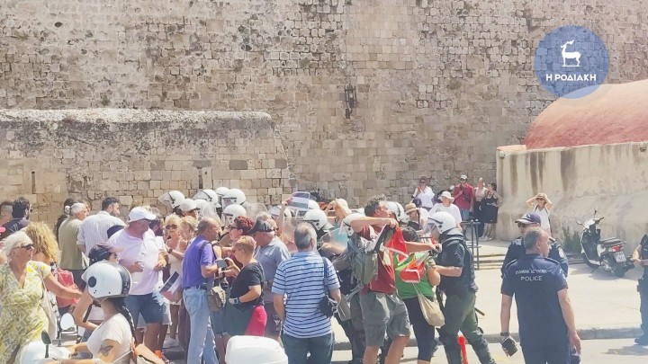 Σφοδρή αντίδραση προκάλεσε η σύλληψη της πρώην δημοτικής συμβούλου Ρόδου και υποψήφιας βουλευτή Ευαγγελίας Παναή, κατά τη διάρκεια συγκέντρωσης διαμαρτυρίας στο λιμάνι του νησιού για τη γενοκτονία στη Γάζα.
