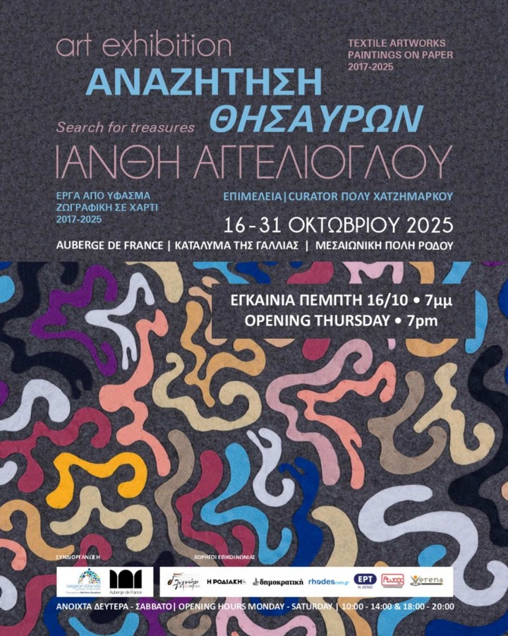 Εγκαινιάζεται η Τρίτη ατομική έκθεση της Ιάνθης Αγγελίογλου, με τίτλο“Αναζήτηση Θησαυρών”,στο Κατάλυμα της Γαλλίας στη Μεσαιωνική Πόλη της Ρόδου.