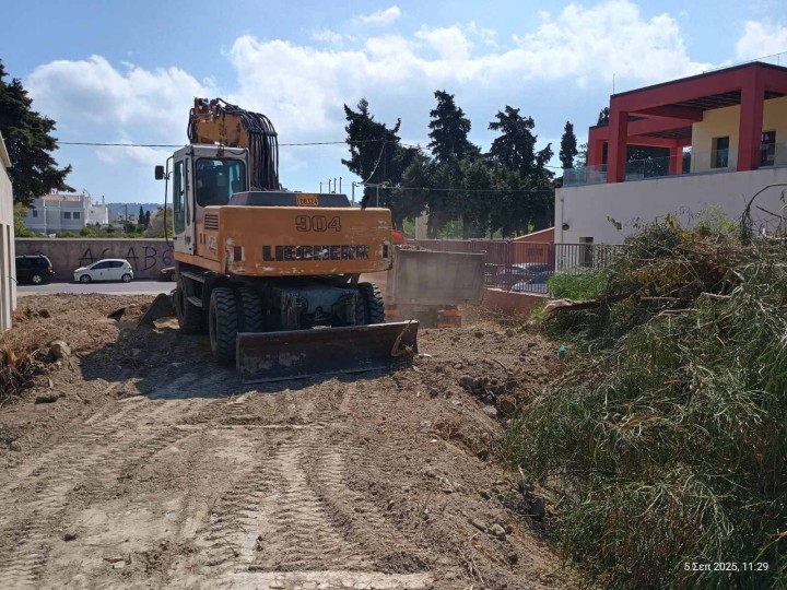Για την απαιτούμενη προετοιμασία στον χώρο, χρειάστηκαν να εργαστούν για αρκετές μέρες βαρέου τύπου μηχανήματα για να καθαρίσουν την περιοχή όπου θα ξεκινήσουν τα έργα για το κολυμβητήριο της Ιαλυσού.