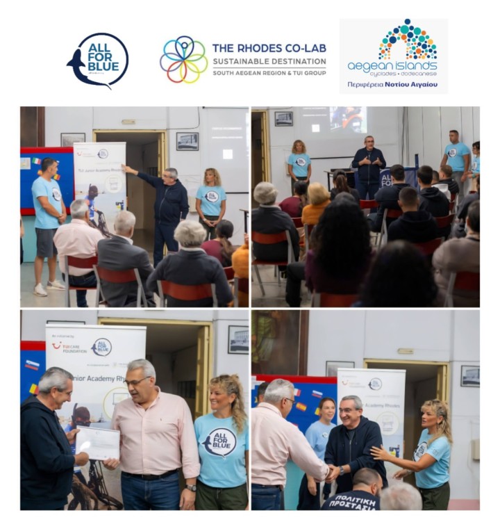 Μια ακόμα σημαντική δράση περιβαλλοντικής ευαισθητοποίησης πραγματοποιήθηκε στο Εσπερινό Γυμνάσιο Ρόδου, με πρωτοβουλία της ομάδας All for Blue, στο πλαίσιο της ευρύτερης συνεργασίας με την περιφέρεια Νοτίου Αιγαίου, τον δήμο Ρόδου, την TUI Group και την TUI Care Foundation μέσω του προγράμματος "The Rhodes Co-Lab".