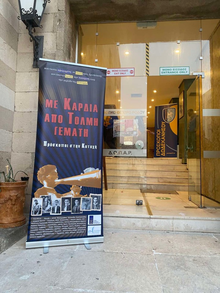 Κεντρικό μέρος της εκδήλωσης αποτέλεσε η προβολή του συγκλονιστικού ντοκιμαντέρ «Με καρδιά από τόλμη γεμάτη – Πρόσκοποι στην κατοχή», παραγωγή του Ιστορικού Αρχείου του Σώματος Ελλήνων Προσκόπων (ΣΕΠ). Η ταινία, βασισμένη σε ιστορικά τεκμήρια και μαρτυρίες αποτελεί μια οφειλή μνήμης σε εκείνους τους νέους Προσκόπους, οι οποίοι, κάτω από τις πιο αντίξοες συνθήκες της Κατοχής, αρνήθηκαν να λυγίσουν.