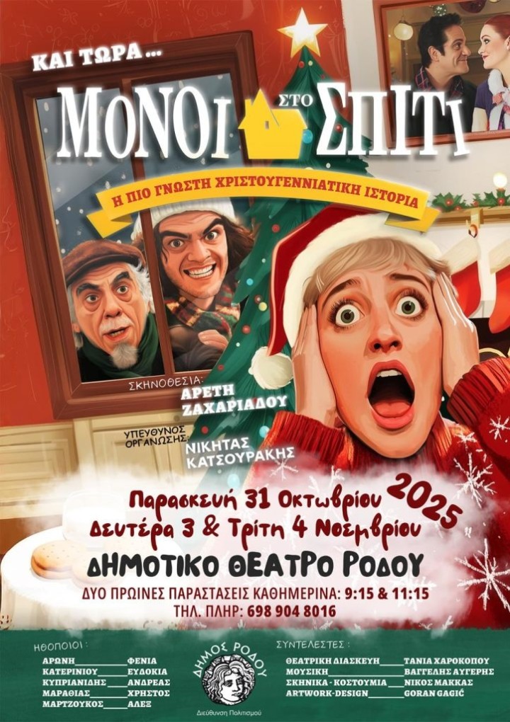 Την Παρασκευή 31 Οκτωβρίου 2025, τα παιδιά και οι εργαζόμενοι του ΚΔΑΠ-ΜΕΑ ΕΣΤΙΑ της Α.Μ.Κ.Ε. Κοινωνικής Φροντίδας και Ανάπτυξης του δήμου Ρόδου, με πρόεδρο τον Θωμά Σωτρίλλη, αντιδήμαρχο Κοινωνικής Πολιτικής, Αλληλεγγύης και Ισότητας, είχαν την ευκαιρία να παρακολουθήσουν την υπέροχη χριστουγεννιάτικη θεατρική παράσταση «Μόνοι στο σπίτι (Home Alone)», μια εμπειρία γεμάτη χαρά, γέλιο και το αληθινό πνεύμα των Χριστουγέννων!