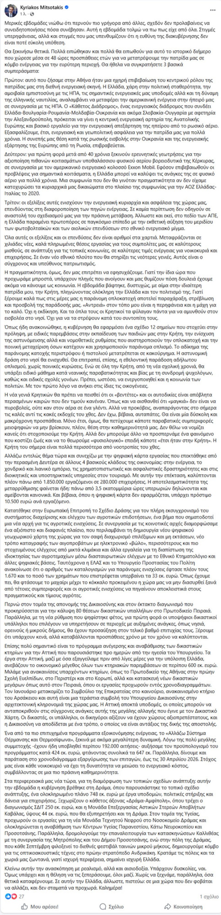 Όλη η ανάρτηση του Κυριάκου Μητσοτάκη