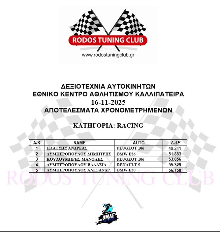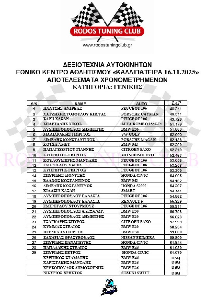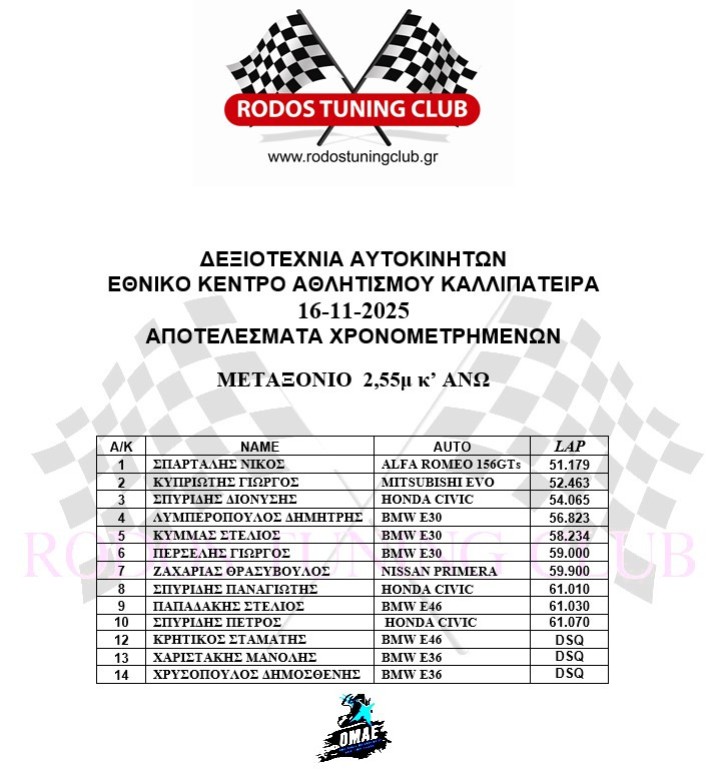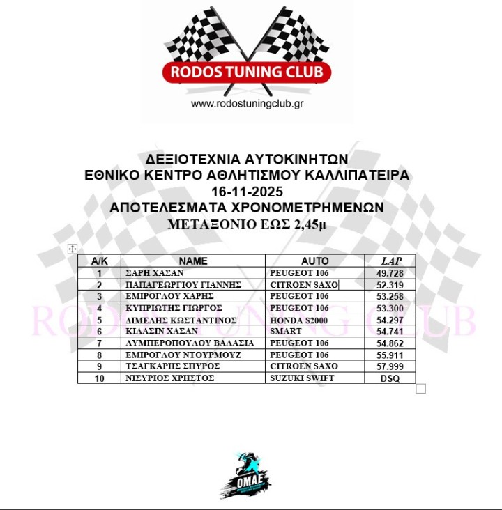 Τα αποτελέσματα των Αγώνων Δεξιοτεχνίας από τον Ροδιακό Σύλλογο Αυτοκίνησης