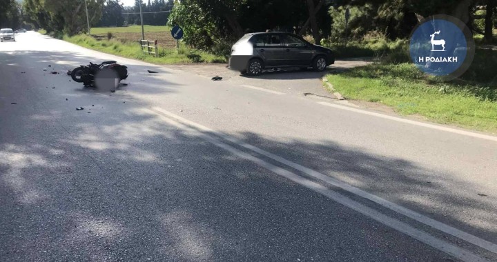 Σφοδρή σύγκρουση δικύκλου με Ι.Χ. στη Ρόδου - Καλλιθέας