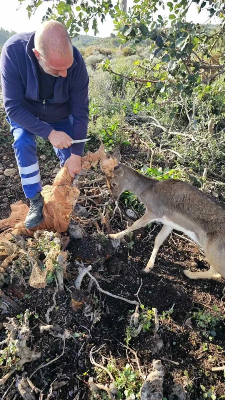 Με προσεκτικές κινήσεις και την εμπειρία που διαθέτουν στον χειρισμό δύσκολων καταστάσεων, οι Κρητικοί τεχνικοί, Στέφανος Κουρουπάκης και Κωνσταντίνος Βουράκης, κατάφεραν να απελευθερώσουν το πανέμορφο ζώο, το οποίο επέστρεψε αμέσως στο φυσικό του περιβάλλον.