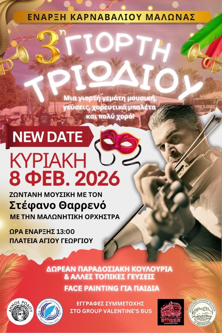Η Μαλώνα μετρά αντίστροφα για τη γιορτή που έγινε θεσμός και κάθε χρόνο κερδίζει όλο και περισσότερους φίλους. Την Κυριακή 8 Φεβρουαρίου 2026, στις 13:00, η Πλατεία Αγίου Γεωργίου γεμίζει χρώματα, μουσικές και αποκριάτικο κέφι, με αφορμή την 3η Γιορτή Τριωδίου.
