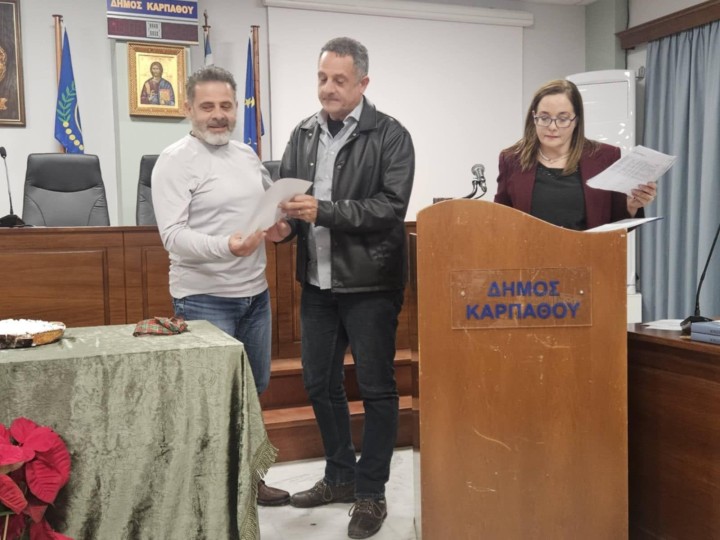 Ο Δήμος Καρπάθου ευχαριστεί θερμά όλους και όλες που τίμησαν με την παρουσία τους την εκδήλωση . Επίσης τον Παραδοσιακό Φούρνο Μενετών για την προσφορά της βασιλόπιτας, τον ηχολήπτη κ. Γιώργο Χατζηκωνσταντή για την τεχνική υποστήριξη και το Διαφημιστικό γραφείο «Μαλόφτης» για τις εκτυπώσεις των επαίνων.