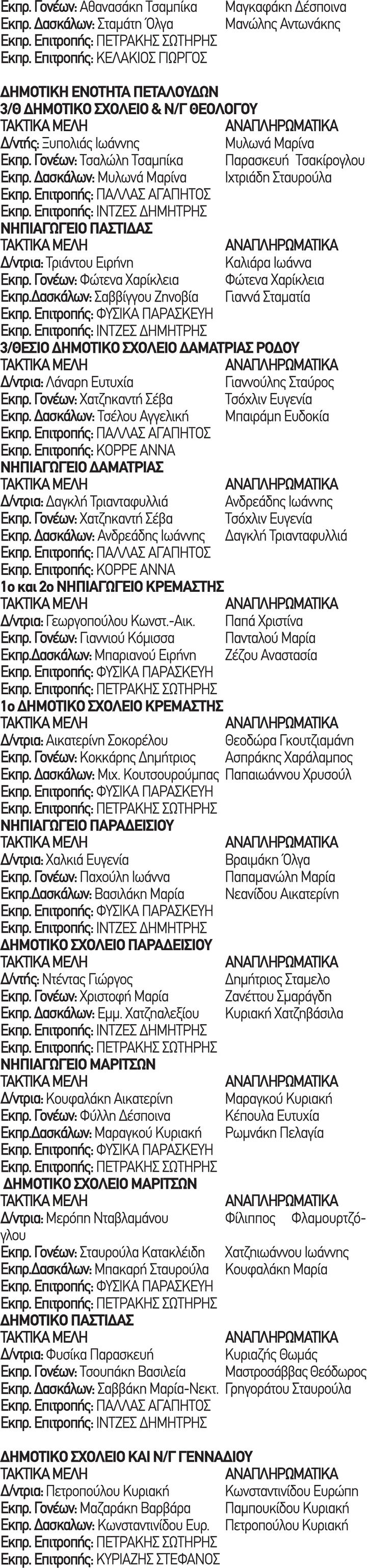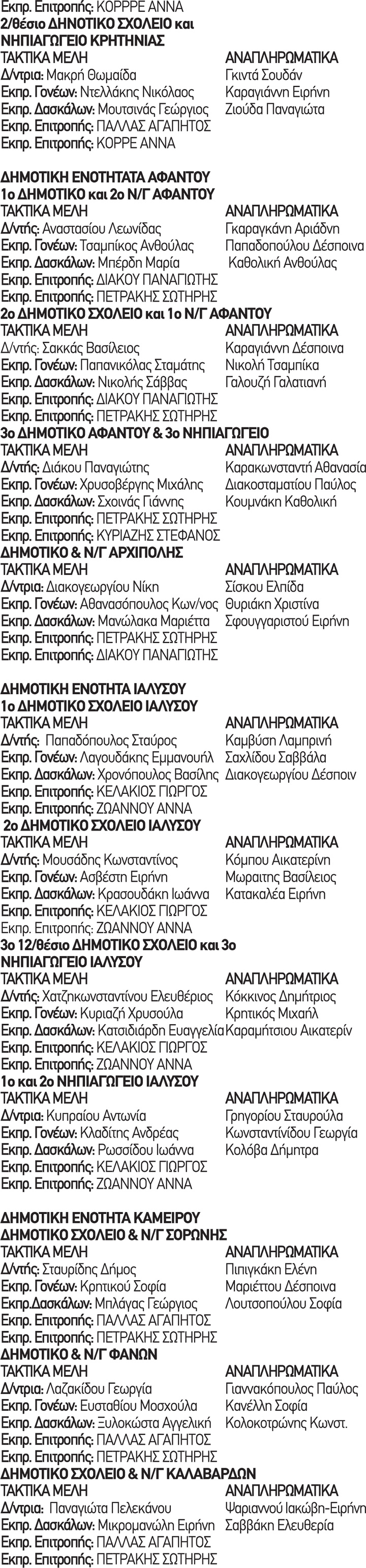 Ποιοι ορίστηκαν στις σχολικές επιτροπές για τα Δημοτικά και τα Νηπιαγωγεία του νησιού