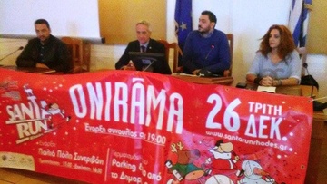 Πρόκειται για μια γιορτινή και συναρπαστική χριστουγεννιάτικη διαδρομή στην οποία όλοι οι συμμετέχοντες θα περπατήσουν στο κέντρο της Ρόδου για καλό σκοπό, φορώντας στολές του Άγιου Βασίλη. Αφού περιπλανηθούν στους δρόμους της πόλης θα καταλήξουν σε μια μεγάλη και κεφάτη συναυλία με τους Onirama.