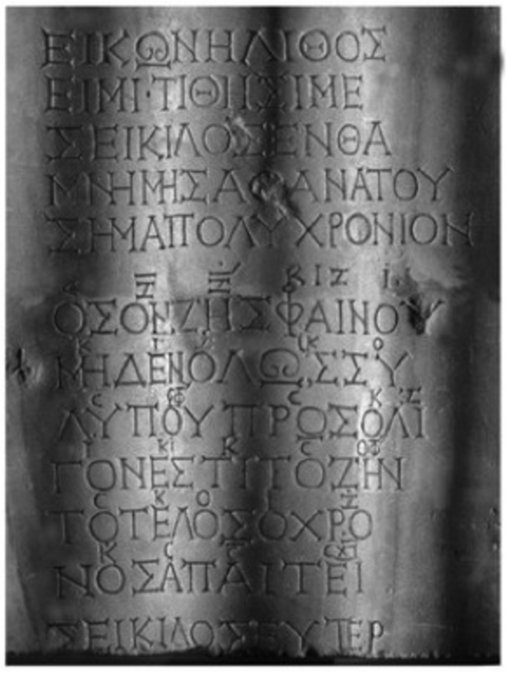 Πρόκειται για το αρχαιότερο παγκοσμίως γνωστό τραγούδι (περ. 200 μ.Χ.), του οποίου σώζονται πλήρως και οι στίχοι και η μουσική. Οι λιτοί, αλλά διαχρονικά επίκαιροι στίχοι του (ὅσον ζῆς φαίνου, μηδὲν ὅλως σὺ λυποῦ· πρὸς ὀλίγον ἐστὶ τὸ ζῆν, τὸ τέλος ὁ χρόνος ἀπαιτεῖ) προτρέπουν: «Όσο ζεις να χαίρεσαι, να μη λυπάσαι καθόλου· η ζωή είναι σύντομη, ο χρόνος οδηγεί στο τέλος».
