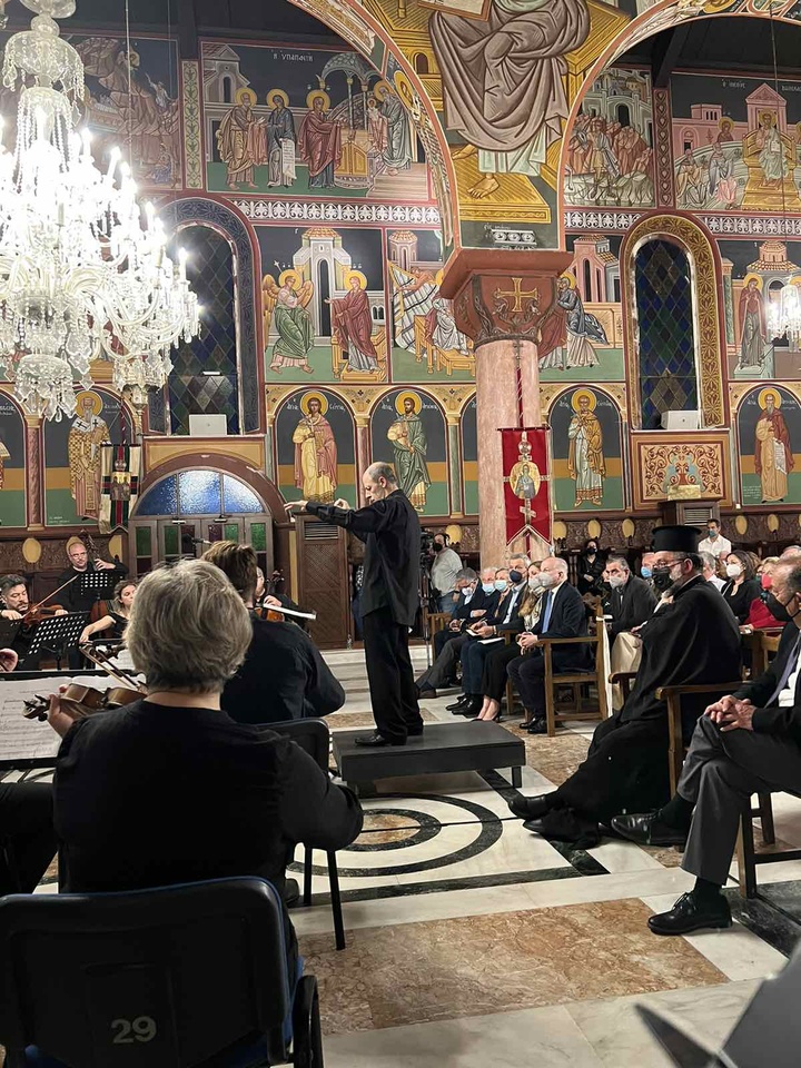 Η συναυλία ολοκληρώθηκε με το έργο «Φιλέρημος», για χορωδία, καμπάνες και ορχήστρα, που προκάλεσε δέος και ιδιαίτερη συγκινησιακή ατμόσφαιρα.