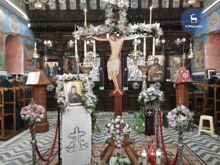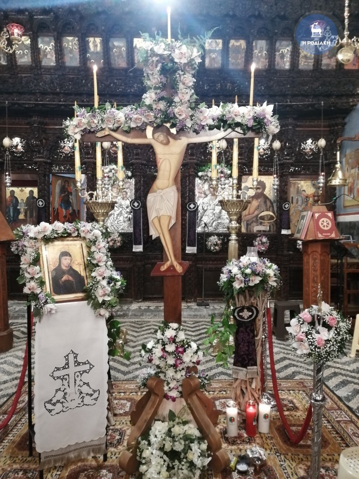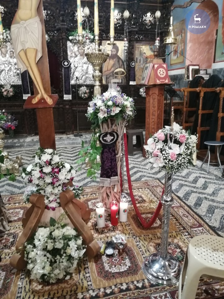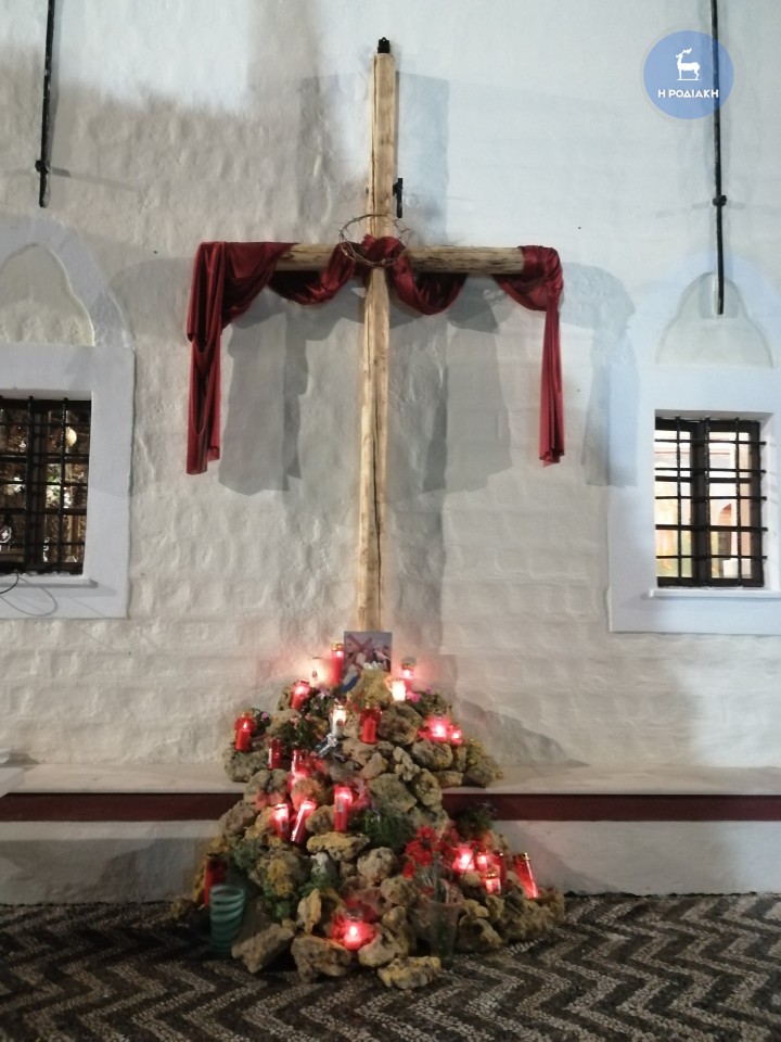 Στο πλαίσιο αυτό, στην εκκλησία της Κοίμησης της Θεοτόκου στην Ιαλυσό, προχθές βράδυ στήθηκε για πρώτη φορά ένας μεγάλος Σταυρός (όπως του Εσταυρωμένου) εξωτερικά του κτηρίου του ναού, στον προαύλιο χώρο, και εκεί οι πιστοί μπορούσαν να αφήσουν τα κεράκια τους αναμμένα για τον Υιό του Θεού.
