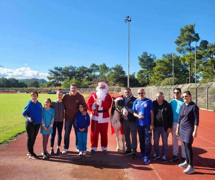 Έτσι, το πρωί συγκεντρώθηκαν στο στάδιο «Ιωάννης Πρώτος» για την καθιερωμένη πια Χριστουγεννιάτικη γιορτή, μοιράζοντας ο Άγιος Βασίλης, που έφτασε στην εγκατάσταση με το πόνι του, τα δώρα σε όλους τους αθλητές και τις αθλήτριες.