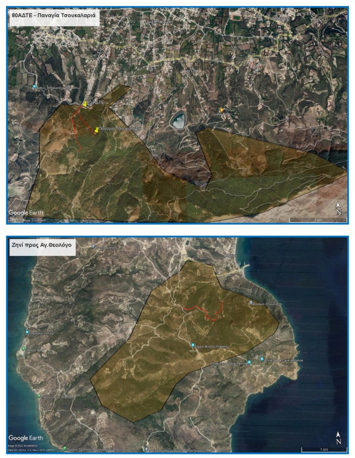 Οι περιοχές που βρίσκονται με μαύρο περίγραμμα στο συνημμένο απόσπασμα Google Earth.