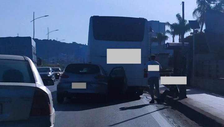 Κάτω από συνθήκες που αναμένεται να διευρκρινίσει η έρευνα της Τροχαίας που κλήθηκε στο σημείο, ι.χ. αυτοκίνητο συγκρούστηκε με τουριστικό λεωφορείο. Ευτυχώς από τη σύγκρουση δεν υπήρξαν τραυματισμοί.