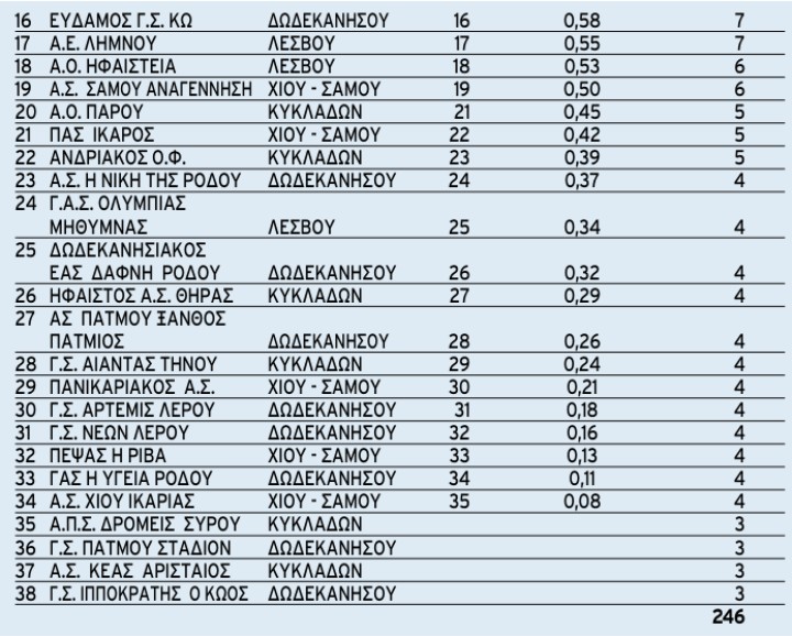 Εννοείται πως τις μεγαλύτερες αποστολές έχουν τα υψηλότερα βαθμολογημένα σωματεία, ενώ πέρσι, εκτός αυτών της Μήλου, ταξίδεψαν συνολικά 38 με 246 αθλητές-αθλήτριες και συνοδούς.