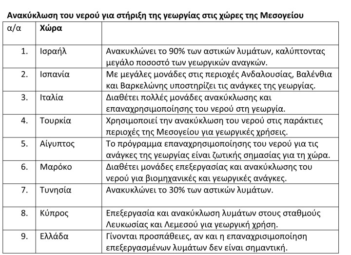 Το βασικότερο πρόβλημα που έχουν να αντιμετωπίσουν οι χώρες της Μεσογείου, εκτός από τους καύσωνες, είναι η λειψυδρία. Ανεπαρκής ποσότητα νερού, τόσο για ανθρώπινη κατανάλωση όσο και για τη γεωργία.