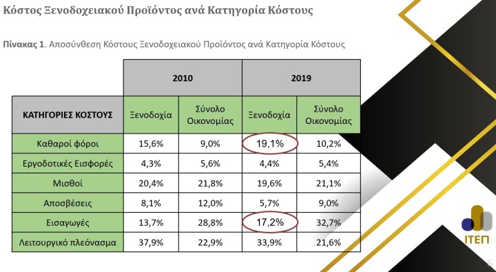 Το 25% του κόστους του ξενοδοχειακού προϊόντος είναι φόροι και ασφαλιστικές εισφορές σύμφωνα με μια πολύ σημαντική έρευνα του Ινστιτούτου Τουριστικών Ερευνών και Προβλέψεων (ΙΤΕΠ).