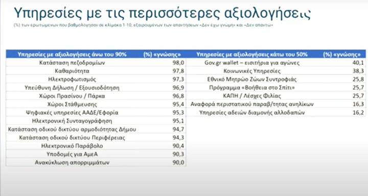 Στο πλαίσιο της παρουσίασης, τον λόγο πήρε και ο πρωθυπουργός ο οποίος στάθηκε στις υψηλές βαθμολογίες που καταγράφηκαν στις ψηφιακές υπηρεσίες, αλλά και σε μερικές χαμηλές που δόθηκαν σε υπηρεσίες δήμων.