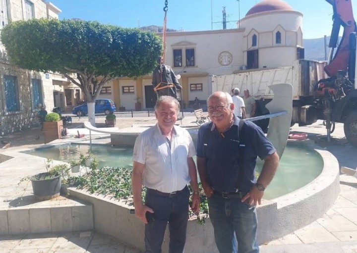 αναπόσπαστο μέρος της σύνθεσης με το σιντριβάνι και τον καλύμνικο «αχταρμά», ολοκληρώνει ένα αισθητικό σύνολο, που θα κοσμεί το κέντρο του νησιού. Δημιουργείται ένας ιδιαίτερης αισθητικής χώρος, που θα συντελέσει στην ποιοτική αναβάθμιση της καθημερινότητας στην Πόθια, τόσο για τους συμπατριώτες μας όσο και για τους επισκέπτες του νησιού.