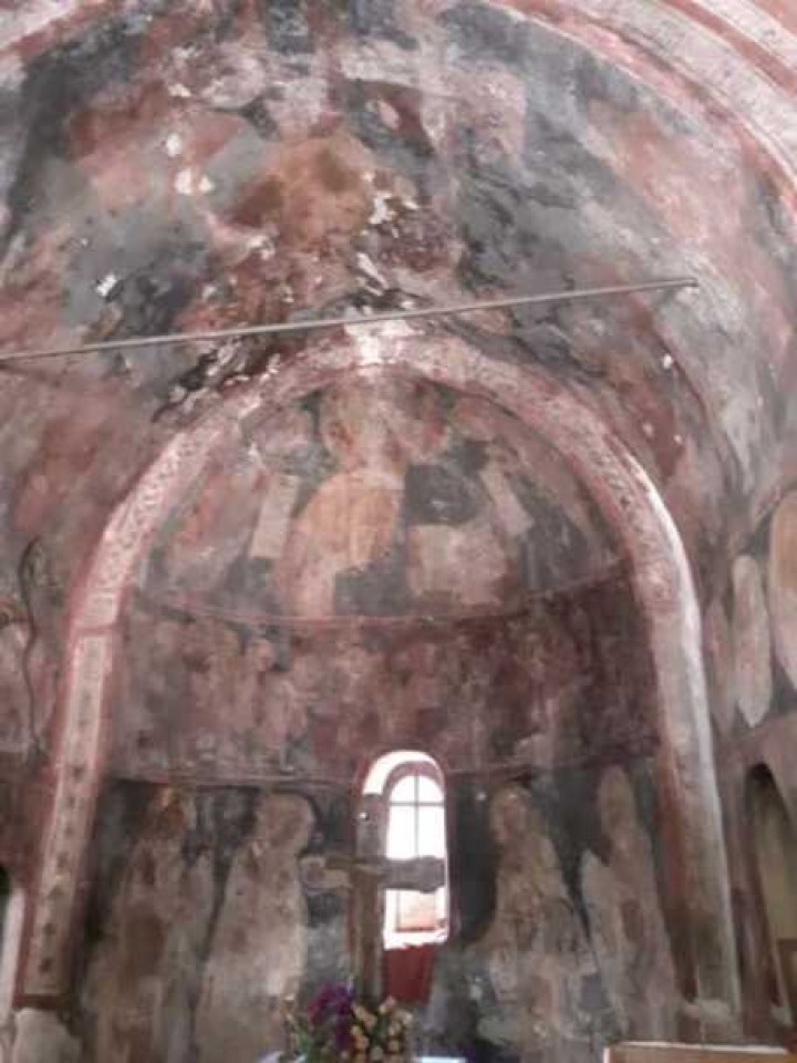 Οι τοιχογραφίες που για αιώνες κοσμούσαν τον ναό έχουν σχεδόν καταστραφεί. Η φθορά του χρόνου είναι εμφανής, όμως το πιο σοκαριστικό είναι οι βανδαλισμοί: πρόσωπα Αγίων έχουν χαραχθεί ακόμα και με μαχαίρι, παραμορφώνοντας ανεπανόρθωτα μοναδικά έργα βυζαντινής τέχνης. Πρόκειται για μια ωμή βεβήλωση που δεν προσβάλλει μόνο την πίστη, αλλά και την πολιτιστική μας κληρονομιά.