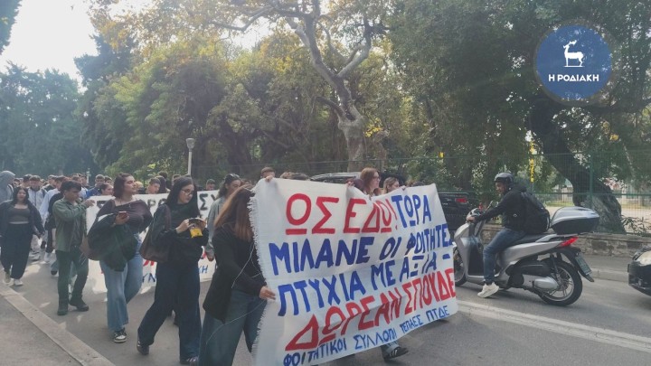 Αυτή τη στιγμή, φοιτητικοί σύλλογοι στη Ρόδο πραγματοποιούν πορεία διαμαρτυρίας, συμμετέχοντας στην πανελλαδική κινητοποίηση που έχει οργανωθεί σε πολλές πόλεις της Ελλάδας.
