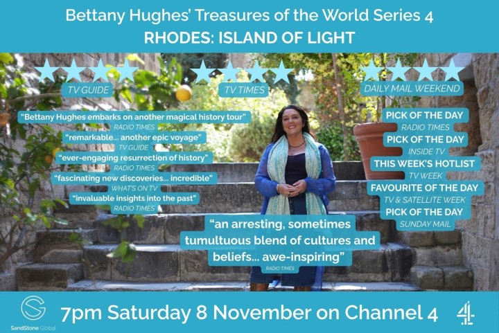 Αφιέρωμα στη Ρόδο, «το νησί του φωτός», στο Channel 4 του Ηνωμένου Βασιλείου, από τη διάσημη συγγραφέα Bettany Hughes στη γνωστή σειρά «Θησαυροί του κόσμου» (“Treasures of the World”)