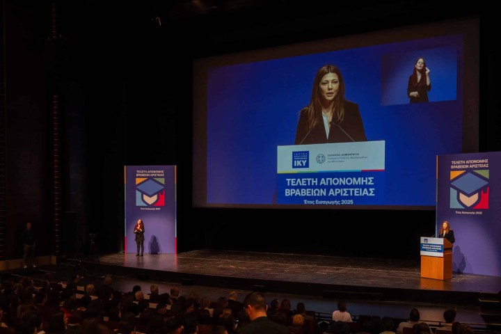 Με την υποστήριξη του υπουργείου Παιδείας, Θρησκευμάτων και Αθλητισμού, το Ίδρυμα Κρατικών Υποτροφιών (ΙΚΥ) πραγματοποίησε τη Δευτέρα 19 Ιανουαρίου 2026, στο Μέγαρο Μουσικής Αθηνών, επίσημη τελετή απονομής των Βραβείων Αριστείας στους/στις πρωτεύσαντες/σες εισαχθέντες/είσες των σχολών και τμημάτων των ιδρυμάτων τριτοβάθμιας εκπαίδευσης της χώρας. Τα βραβεία απένειμε η υπουργός Παιδείας, Θρησκευμάτων και Αθλητισμού, κα. Σοφία Ζαχαράκη.