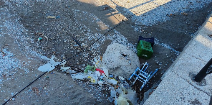 Κατά τη διάρκεια των εργασιών συλλέχθηκαν καλάμια, φύκια, καφάσια, σχοινιά, παλέτες, σπασμένα τραπεζάκια και καρέκλες, καθώς και μεταλλικά αντικείμενα και άλλα απορρίμματα που είχαν καταλήξει στην παραλία.