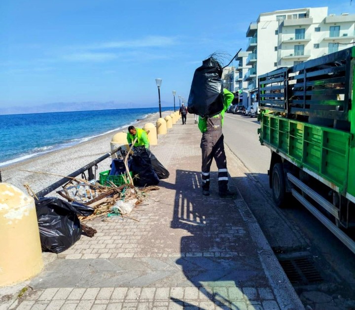Σε καθαρισμό της παραλίας στην Ακτή Μιαούλη (Ψαροπούλα) προχώρησε η Διεύθυνση Καθαριότητας του Δήμου Ρόδου, απομακρύνοντας μεγάλη ποσότητα φερτών υλικών και απορριμμάτων που είχαν συγκεντρωθεί στην ακτή.