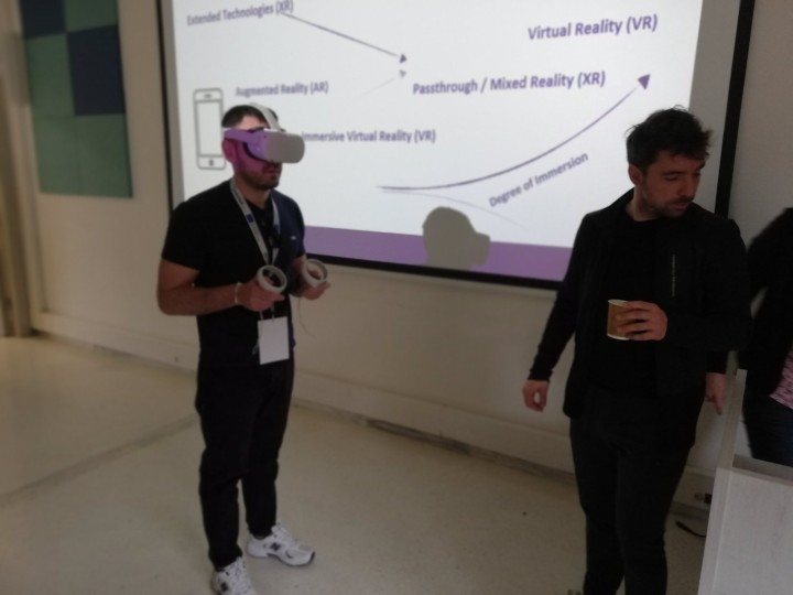 Κατά τη διάρκεια του συνεδρίου, οι εκπαιδευτικοί του σχολείου μας είχαν την ευκαιρία να έρθουν σε επαφή με ερευνητές και σχεδιαστές εκπαιδευτικών εργαλείων XR, να ανταλλάξουν απόψεις και να διατυπώσουν τις ανάγκες και τους προβληματισμούς τους σχετικά με την αξιοποίηση αυτών των τεχνολογιών στη σχολική πράξη. Παράλληλα, δοκίμασαν συσκευές VR, αποκτώντας βιωματική εμπειρία των δυνατοτήτων που μπορούν να προσφέρουν τα εμβυθιστικά περιβάλλοντα στη μαθησιακή διαδικασία.