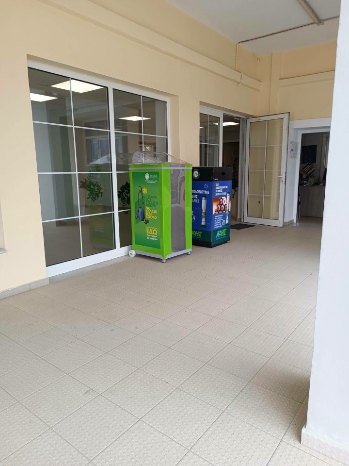Συγκεκριμένα, ολοκληρώθηκε η παράδοση και τοποθέτηση ειδικών κάδων ανακύκλωσης για: μικρές οικιακές ηλεκτρικές και ηλεκτρονικές συσκευές,τόνερ και μελάνια εκτυπωτών καθώς και λαμπτήρες κάθε είδους.Τις επόμενες μέρες θα προγραμματιστεί σε συνεννόηση με τους διευθυντές και η τοποθέτηση στις σχολικές μονάδες, όπου θα πραγματοποιηθούν και εκπαιδευτικές παρουσιάσεις προς τους μαθητές.