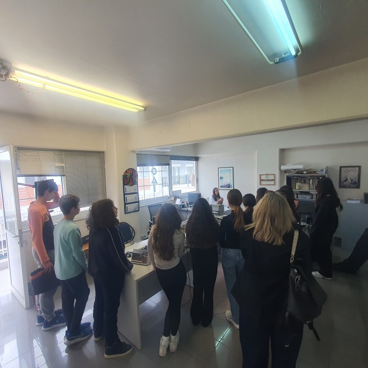 Τους μαθητές ξενάγησε ο αρχισυντάκτης Μιχάλης Μαστής, ο οποίος τους μίλησε με άμεσο και ζωντανό τρόπο για τον κόσμο της δημοσιογραφίας και για το πώς ένα γεγονός μετατρέπεται σε είδηση μέχρι να φτάσει στον αναγνώστη. Μέσα από παραδείγματα και συζήτηση, τους έδειξε τη σημασία της έγκυρης ενημέρωσης και της ευθύνης που έχει κάθε δημοσιογράφος, ενώ δεν παρέλειψε να τους δώσει και συμβουλές για το μέλλον, ενθαρρύνοντάς τους να παρατηρούν, να σκέφτονται κριτικά και να μην σταματούν να αναζητούν την αλήθεια.