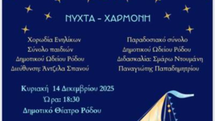 Πολιτισμός - Εκδηλώσεις 11.12.2025 15:15 «Νύχτα Χαρμονή»: Η Ρόδος ντύνεται μελωδικά για μια χριστουγεννιάτικη γιορτή παράδοσης και ελπίδας