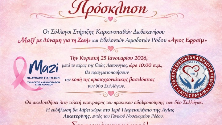 28.01.2026 16:15 Κοπή πίτας στην ΑΣΤΕΡ Σε ευχάριστο και ιδιαίτερα συναδελφικό κλίμα πραγματοποιήθηκε προχθές η κοπή της πρωτοχρονιάτικης βα...