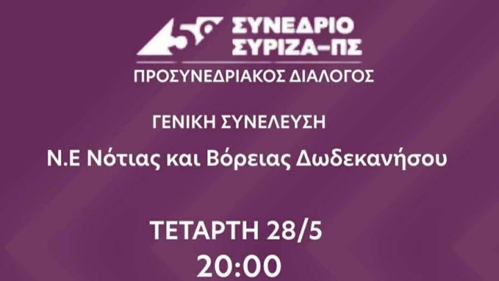 Επικαιρότητα 27.05.2025 17:20 ΡΟΔΟΣ – ΟΜΙΛΙΑ ΣΥΡΙΖΑ ΓΙΑ ΤΗΝ ΥΓΕΙΑ: Ο Ανδρέας Παναγιωτόπουλος ανοίγει διάλογο για το Νοσοκομείο και τα νησιά
