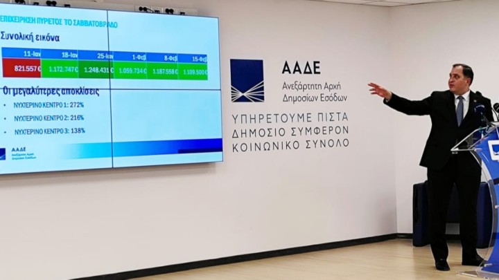 Ελλάδα - Οικονομία 24.02.2025 17:50 Έλεγχοι στα νυχτερινά κέντρα: Η ΑΑΔΕ «έκλεισε τραπέζι» τα Σαββατόβραδα στα μπουζούκια