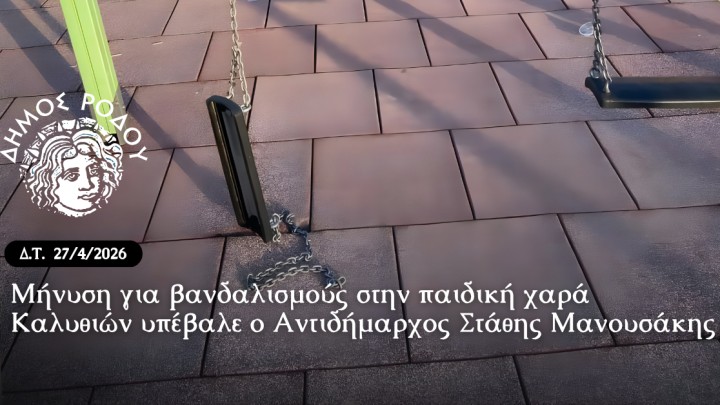 Επικαιρότητα 27.04.2026 13:45 Μήνυση για βανδαλισμούς στην παιδική χαρά Καλυθιών υπέβαλε ο αντιδήμαρχος Στάθης Μανουσάκης