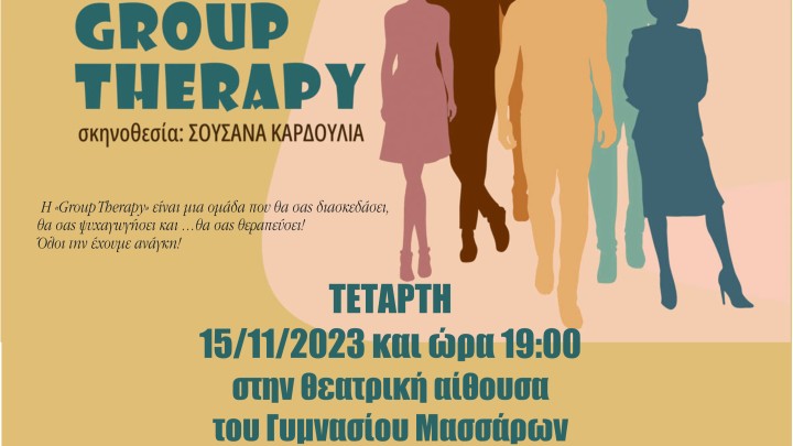 Πολιτισμός - Εκδηλώσεις 09.11.2023 15:05 Θεατρική Παράσταση "Group Therapy" στα Μάσσαρι, σε νέα ημερομηνία