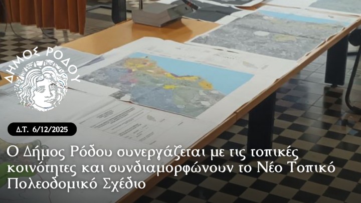 Επικαιρότητα 06.12.2025 12:15 Ο δήμος Ρόδου συνεργάζεται με τις τοπικές κοινότητες και συνδιαμορφώνουν το Νέο Τοπικό Πολεοδομικό Σχέδιο