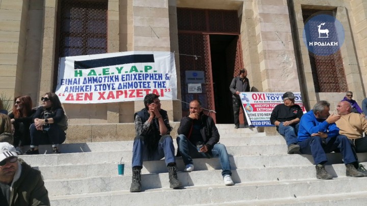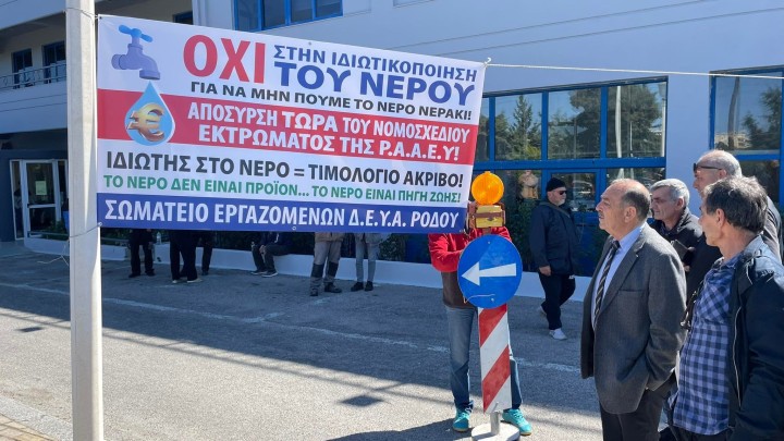 Επικαιρότητα 07.11.2024 16:15 Παράσταση διαμαρτυρίας πραγματοποίησαν στη Ρόδο οι συνδικαλιστές για να μην προχωρήσει η ιδιωτικοποίηση του νερού